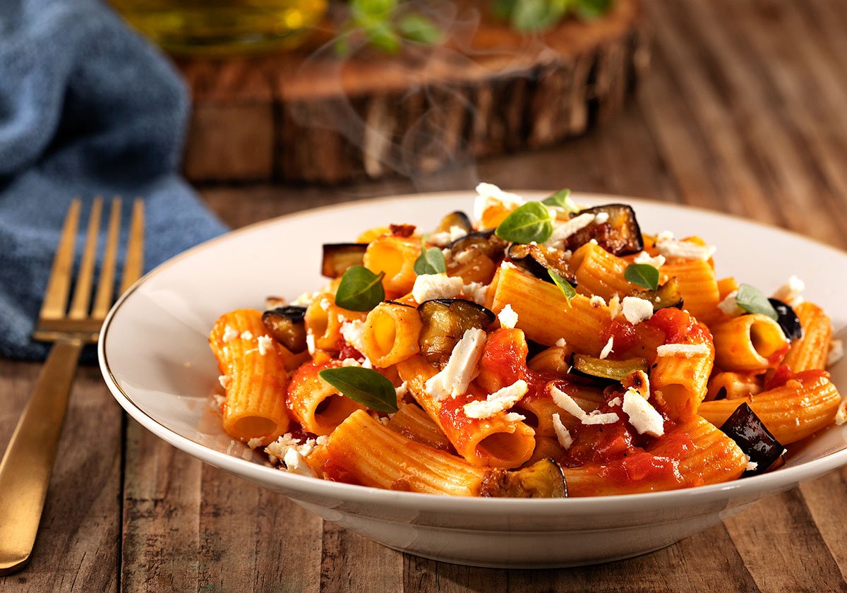 A união entre uma boa massa com legumes, molho e temperos frescos resulta em um prato digno de ocasiões especiais. Para te inspirar, a dica de Adria, marca de massas, biscoitos e torradas da M. Dias Branco é o Tortiglione alla Norma, um prato típico da Itália com sabor surpreendente graças à união harmônica de cada ingrediente. Que tal convidar a família para um jantar especial, contando a história do prato?